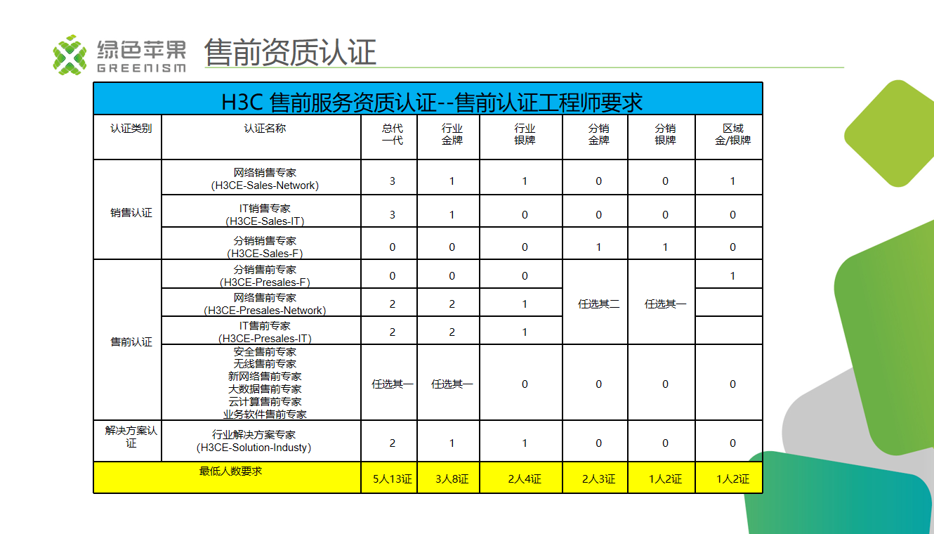 第一环节由资深项目实施专家、新华三授权PME、NE讲师、新华三高级认证工程师、绿色苹果培训中心负责人张涛主讲新华三售前★、售后认证体系★★★、星级服务商的申请要求流程与相应权益★★等。
